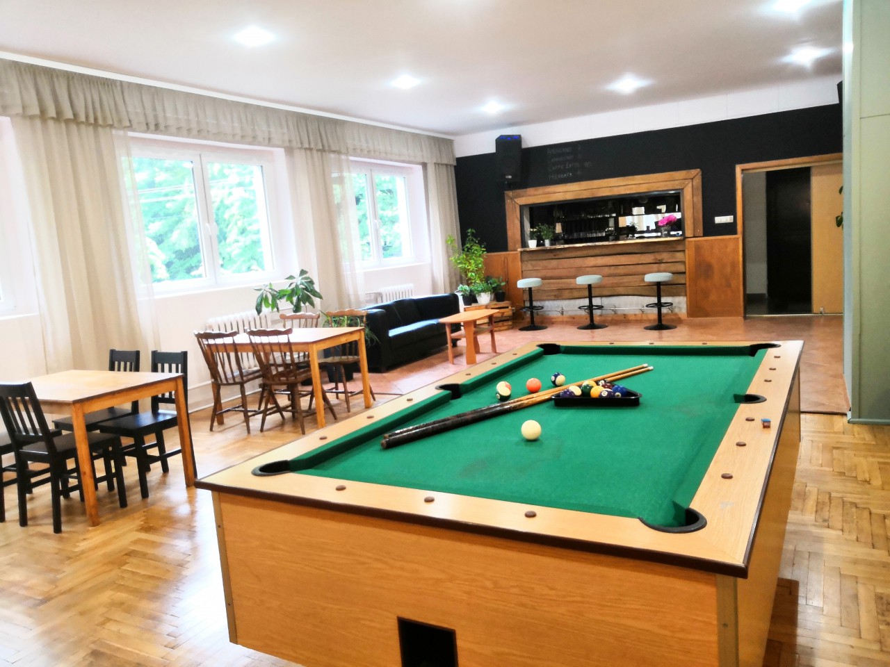 Dysponuje 50 miejscami noclegowymi w pokojach 2, 3, 4-osobowych oraz jednym pokoju studio. Wszystkie pokoje posiadają łazienki i tv, w pokojach są łóżka jednoosobowe. Posiada dużą salę wielofunkcyjną z bilardem oraz piłkarzykami.
